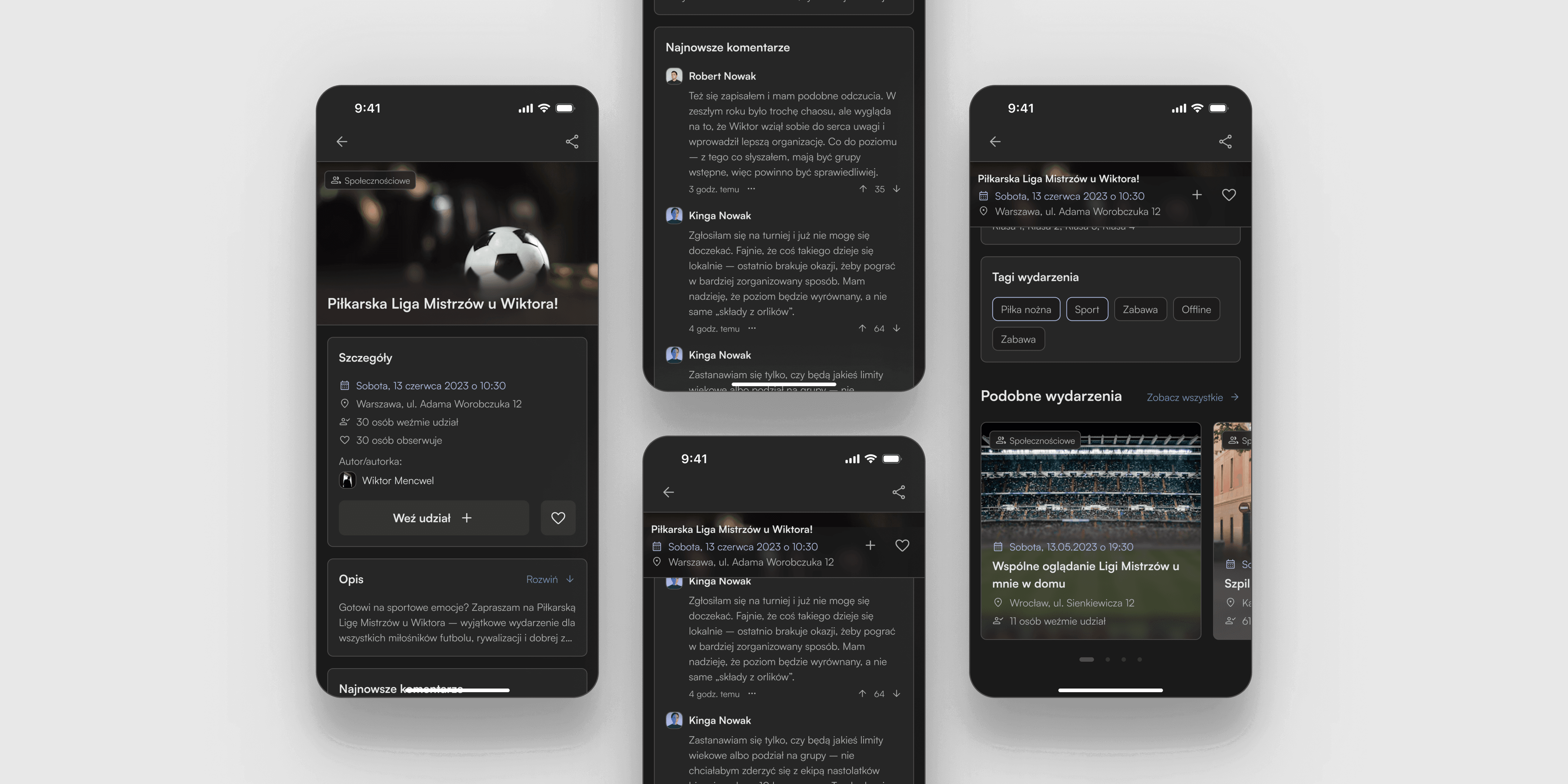 Full attention was given to providing the user with key information necessary to make a decision about joining the event. The most important details are always accessible, ensuring the user doesn't lose context. Easy access to action buttons allows users to join the event or save it to their favorites at any moment.