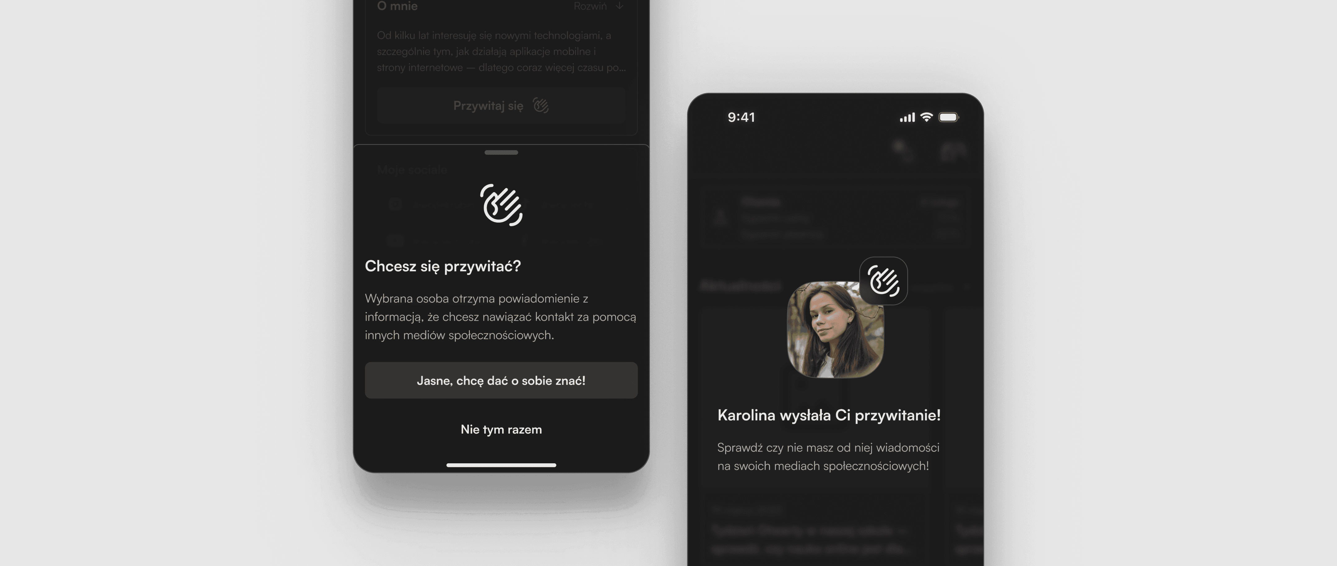 Dialog screen clarifies consequences of the action which raises transparency and lowers the risk of sending an accidental greeting, reducing the chance of user error. Simple visual representation allows to focus at the personal aspect of it.